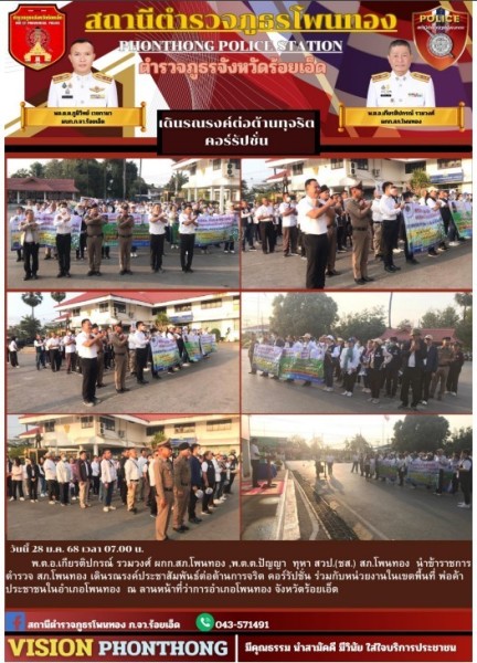 จัดกิจกรรมการอบรมข้าราชการตำรวจในสังกัด สภ.โพนทอง ได้ประกาศนโยบายและมาตรการในการป้องกันการรับ...
