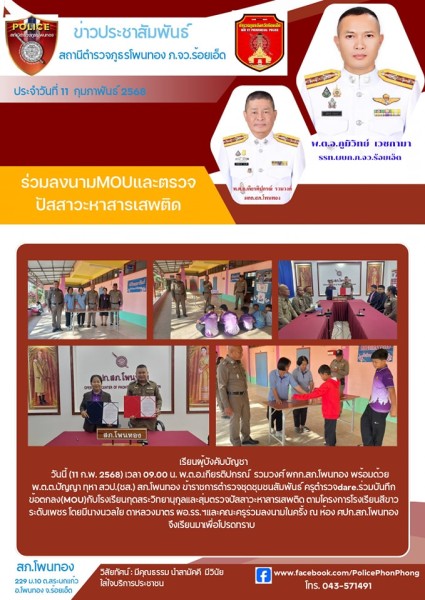 ร่วมลงนาม MOU กับโรงเรียนกุดสระวิทยานุกูล ตามโครงการโรงเรียนสีขาวระดับเพชร