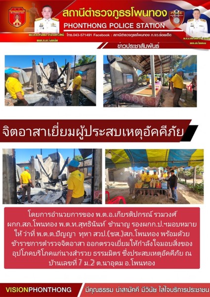 18 ธ.ค. 66 เวลา 09.30 น. ข้าราชการตำรวจชุดจิตอาสา สภ.โพนทอง ตรวจเยี่ยมผู้ประสสบเหตุอัคคีภัย