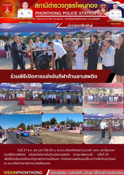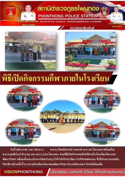 วันนี้ 20 ธ.ค. 66 พ.ต.อ.เกียรติปกรณ์ รวมวงศ์ ผกก.สภ.โพนทอง ร่วมพิธีเปิดกิจกรรมกีฬาสี โรงเรียนโ...