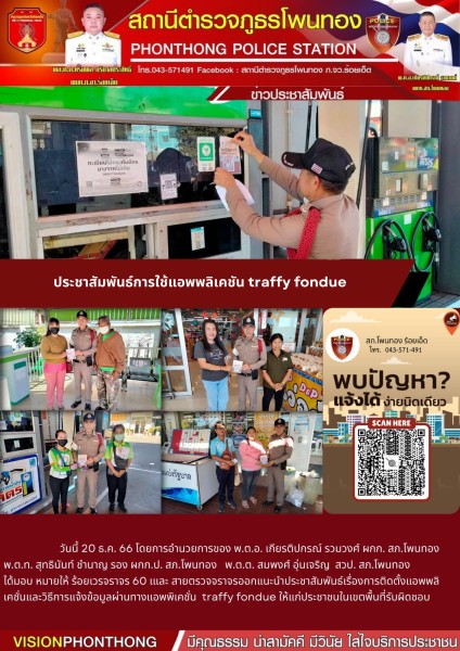 วันนีั 20 ธ.ค.66 เจ้าหน้าที่สายตรวจออกแนะนำประชาสัมพันธ์แอพพิเคชั่น Traffy Fondue