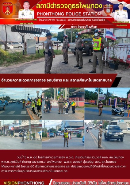 วันนี้(15พ.ย.66)เวลา07.00-08.00น.โดยการอำนวยการของ พ.ต.อ.เกียรติปกรณ์ รวมวงศ์ ผกก.สภ.โพนทอง มอ...