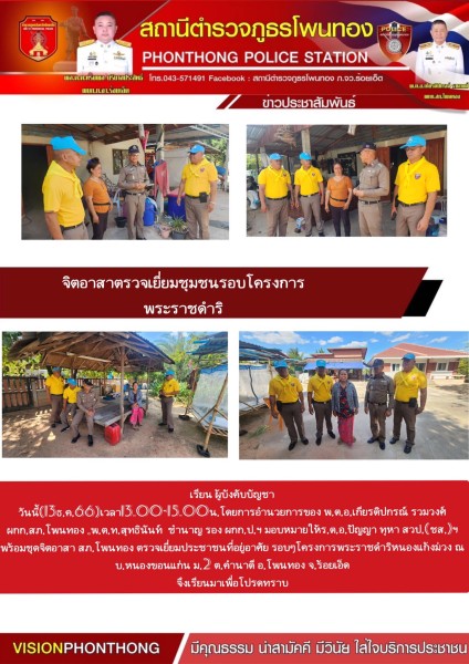 วันนี้ 13 ธ.ค. 66 ข้าราชการตำรวจชุดจิตอาสา ของ สภ.โพนทอง ออกเยี่ยมชุมชนพระราชดำริ