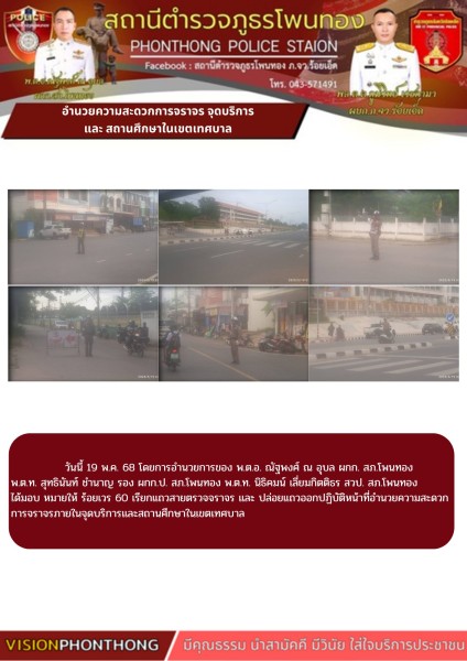 อำนวยความสะดวกการจราจร จุดบริการ และสถานศึกษาในเขตรับผิดชอบ