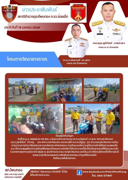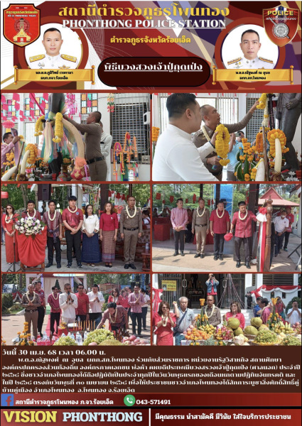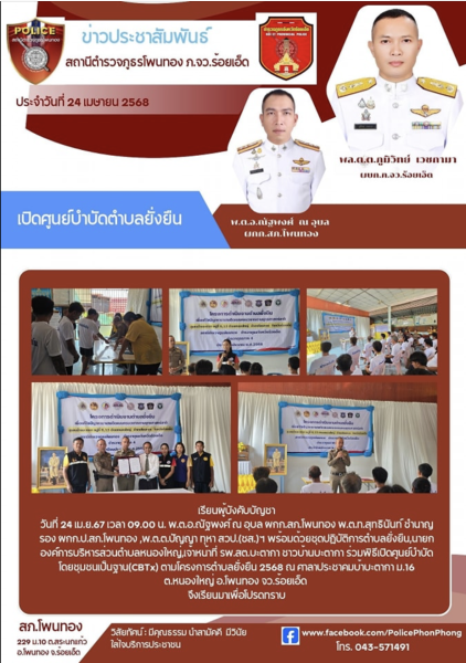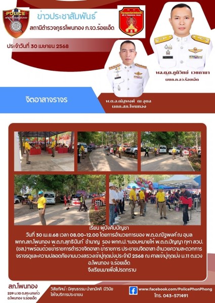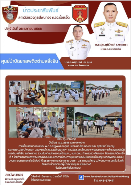 วันนี้ 29 เม.ย. 68 เวลา 11.00 น. พ.ต.อ.ณัฐพงศ์ ณ อุบล ผกก.สภ.โพนทอง ร่วมพิธีมอบสิ่งของพระร...