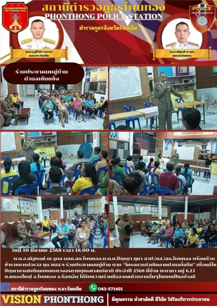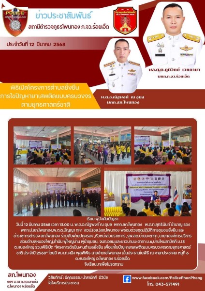 วันนี้ 10 มี.ค.68 เวลา 18.00 น. พ.ต.อ. ณัฐพงศ์ ณ อุบล ผกก.สภ.โพนทอง พร้อมด้วยข้าราชการตำรวจชุด...