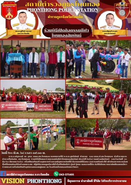 วันนี้ 21 ก.พ.68 (เวลา 07.00 น.) พ.ต.อ.เกียรติปกรณ์ รวมวงศ์ ผกก.สภ.โพนทอง ร่วมกิจกรรมงานประเพณ...