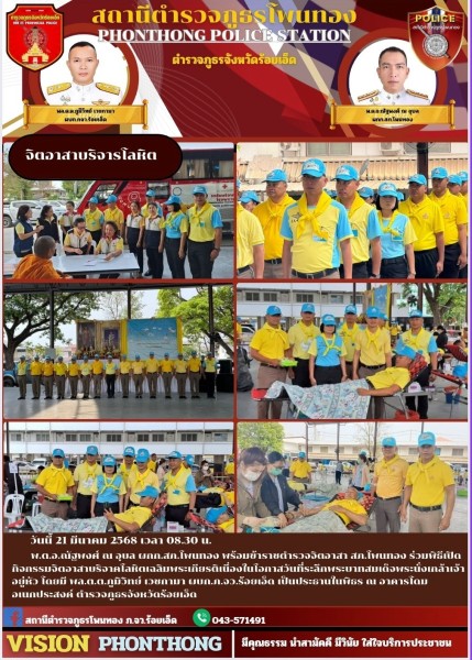 วันนี้ 21 มี.ค.68 เวลา 08.30 น. พ.ต.อ.ณัฐพงศ์ ณ อุบล ผกก.สภ.โพนทอง นำข้าราชการตำรวจจิดอาสา สภ....