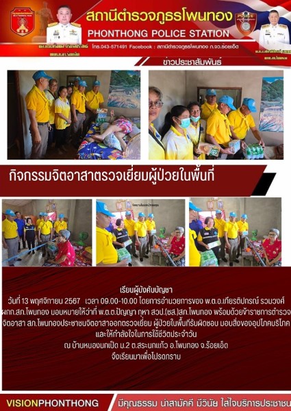 13 พ.ย.67 กิจกรรมจิตอาสาเยี่ยมผู้ป่วยติดเตียงในเขตพื้นที่