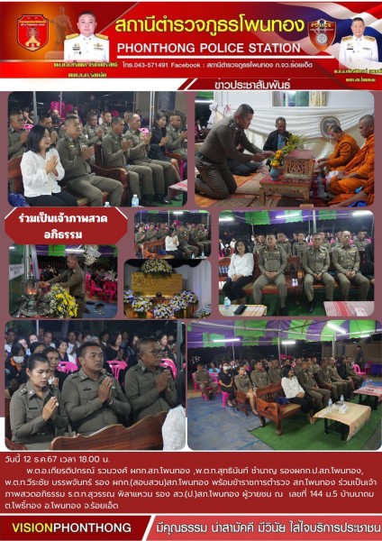 พ.ต.อ.เกียรติปกรณ์ รวมวงศ์ พร้อมข้าราชการตำรวจ ร่วมเป็นเจ้าภาพสวดอภิธรรมข้าราชการตำรวจในสังกัด...